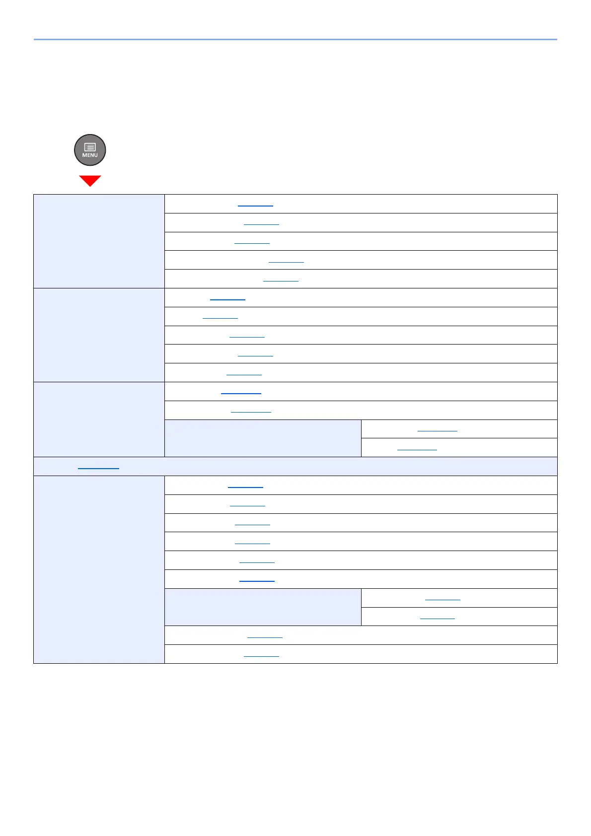 This is a list of menus displayed on the message display. Depending on the settings, some menus may not be displayed.