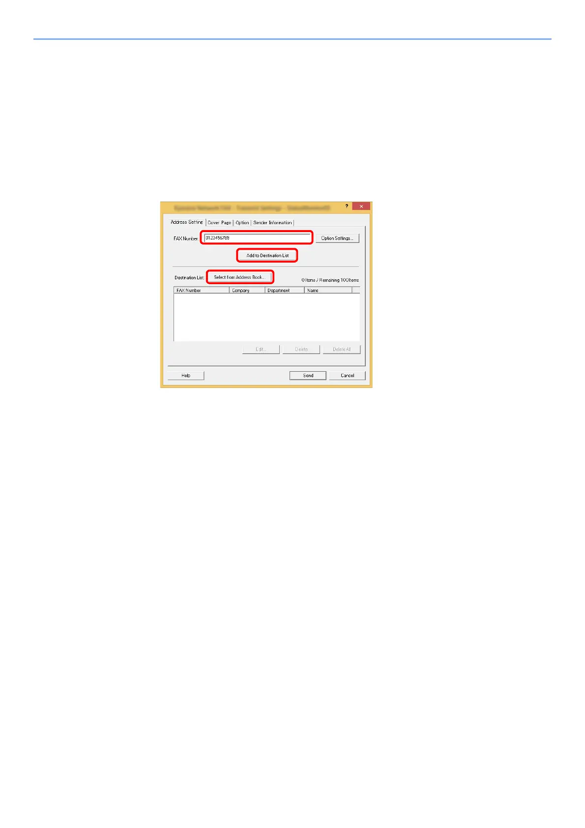 1 Use the keyboard to enter the destination fax number in the [Address Setting] tab.