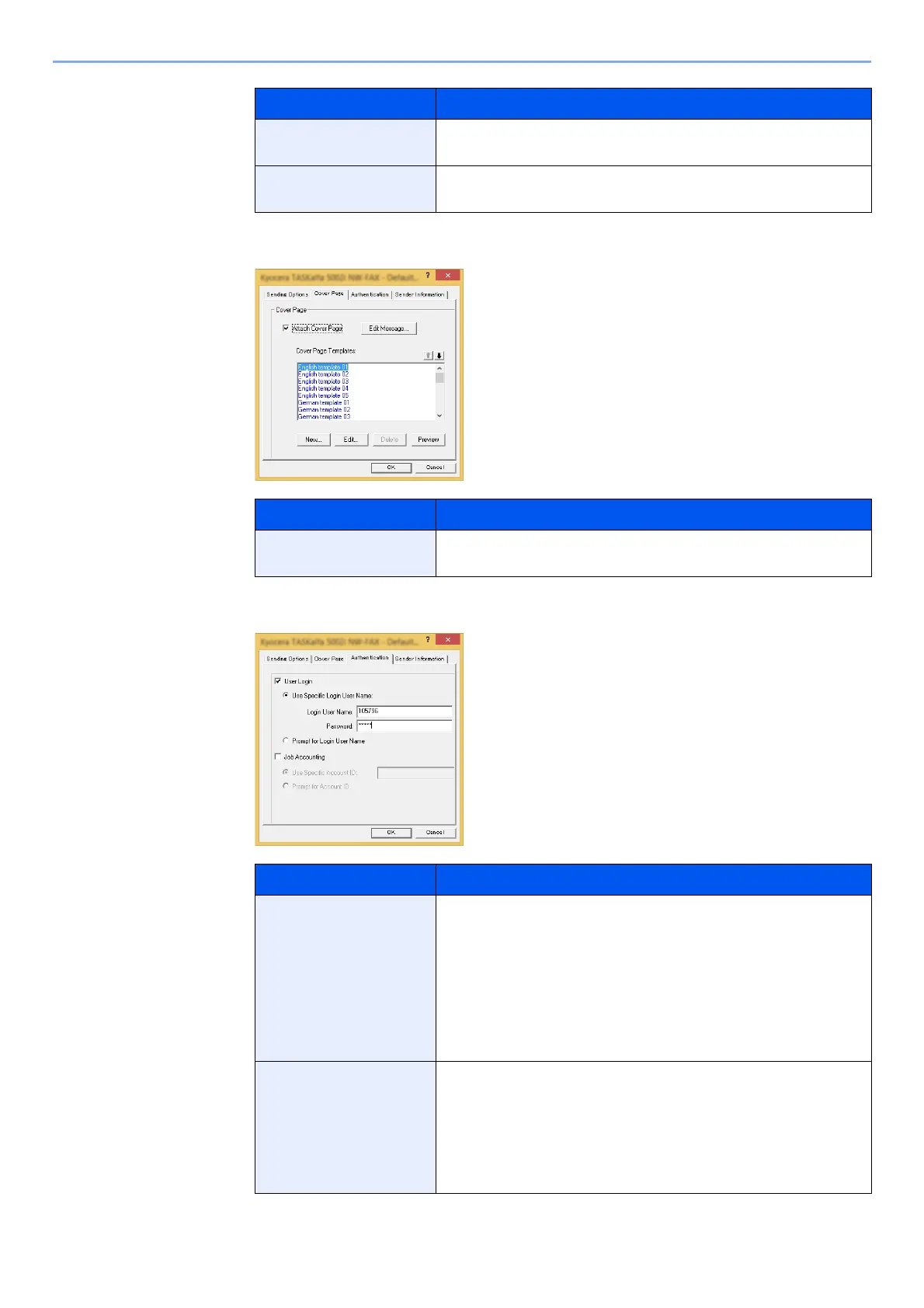 User Login checkbox If the fax machine is set to User Login, select either Use Specific