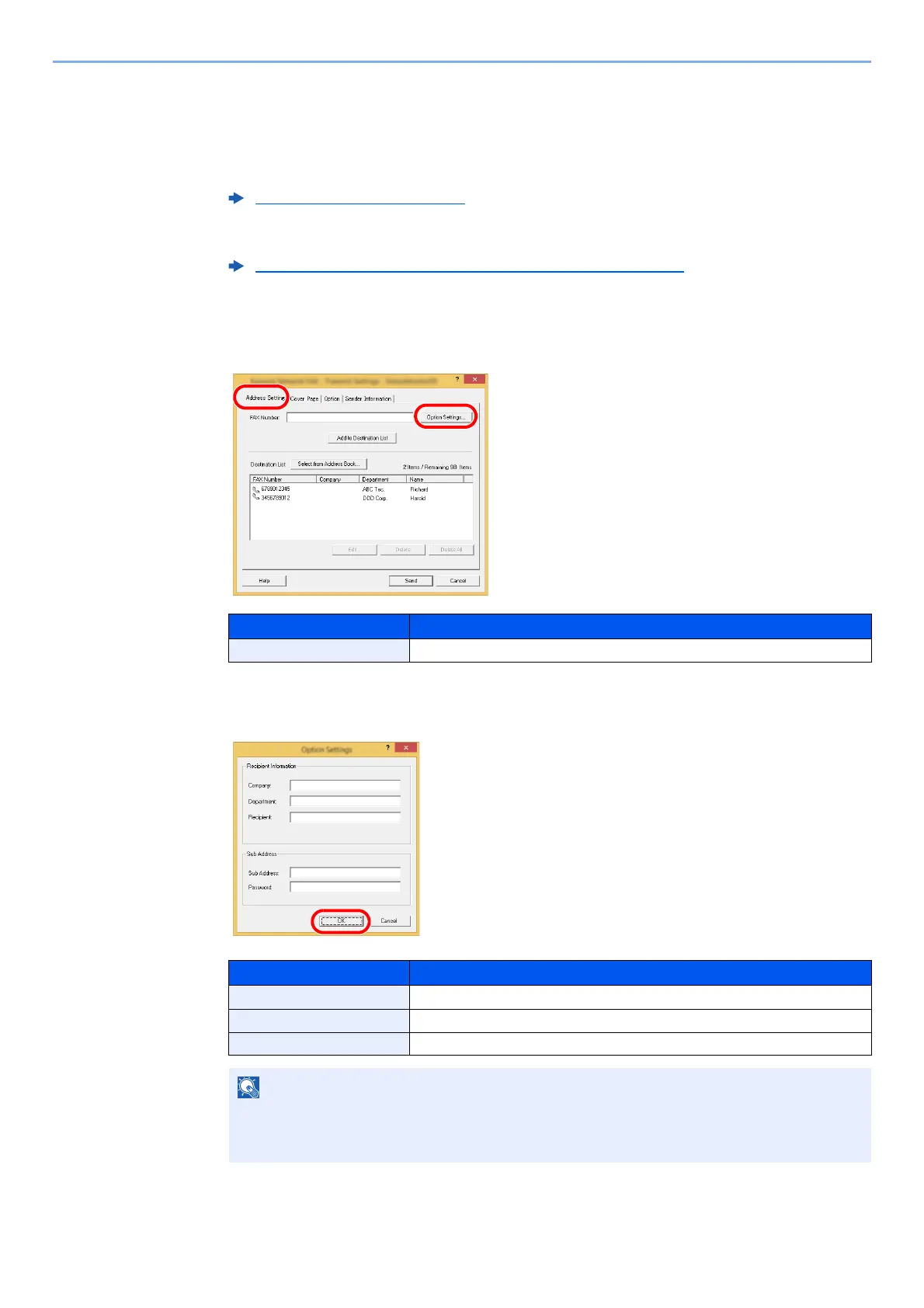 In the [Address Setting] tab, enter the destination fax number and click on the [Option