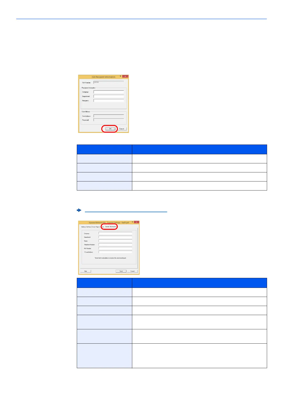 [Sender Information] tab and set the sender information.