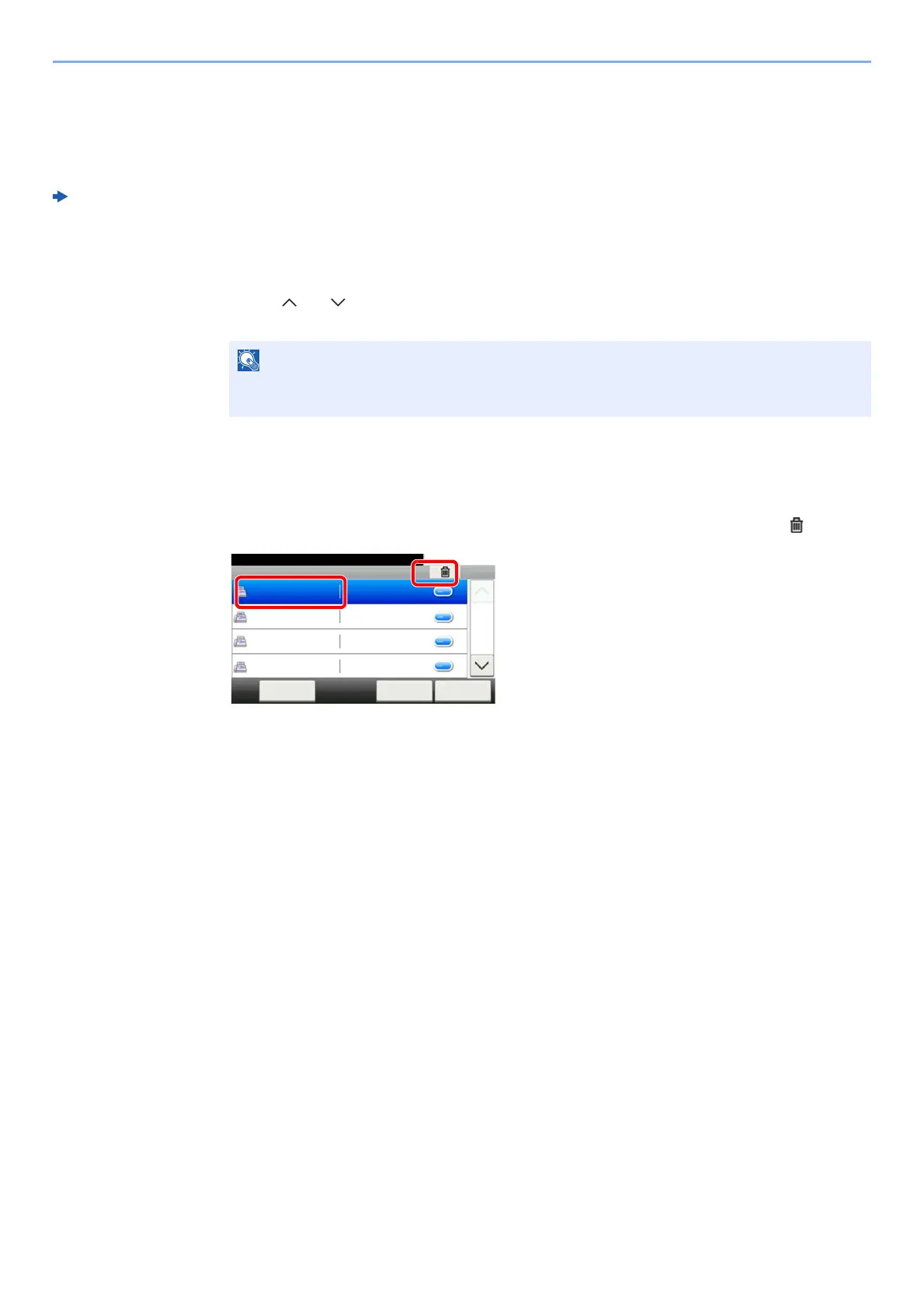 1 To delete the destination, select the destination you want to delete and select [ ].
