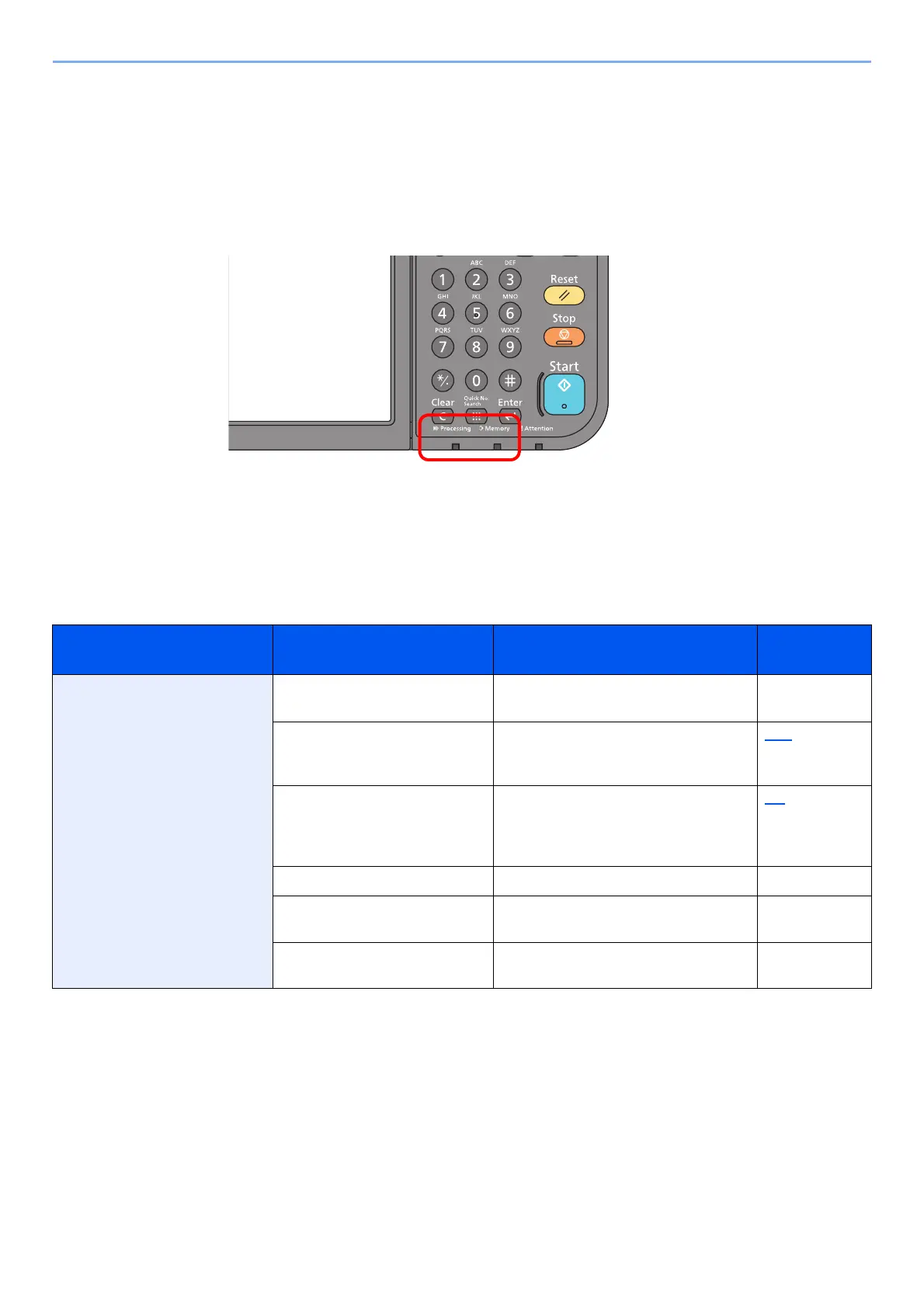 •The [Processing] indicator blinks during fax transmission and reception.