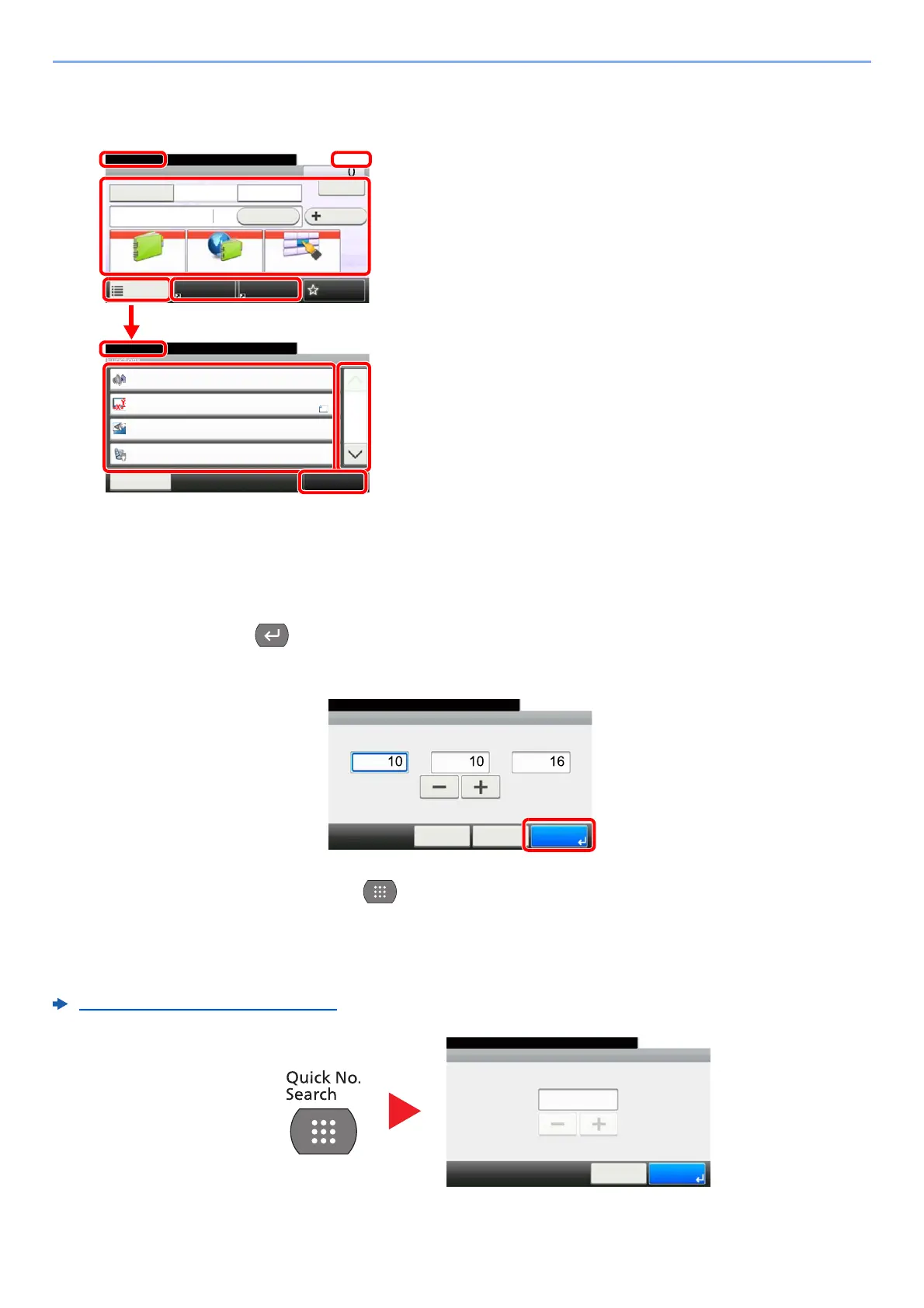 This section explains how to use the [Enter] key and [Quick No. Search] key on the operation panel.