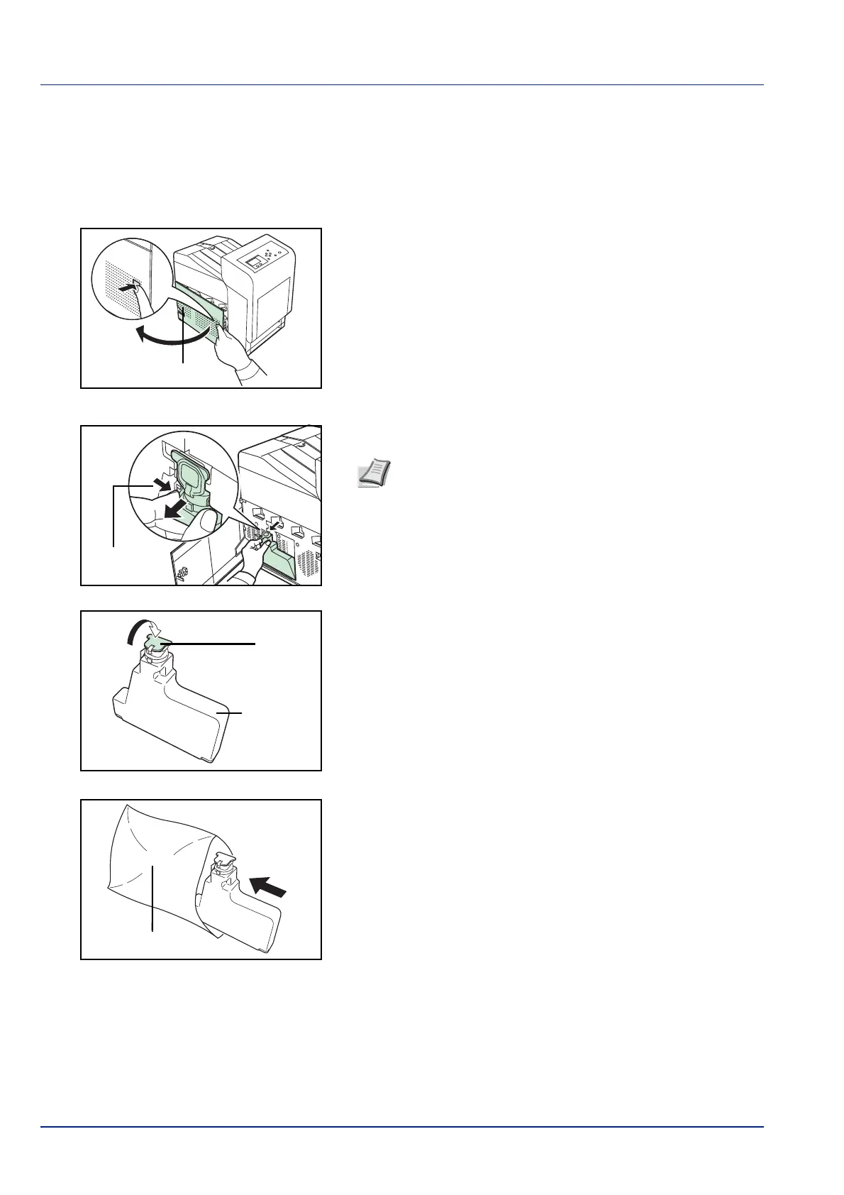opening van de tonerafvalbak omhoog wijst.