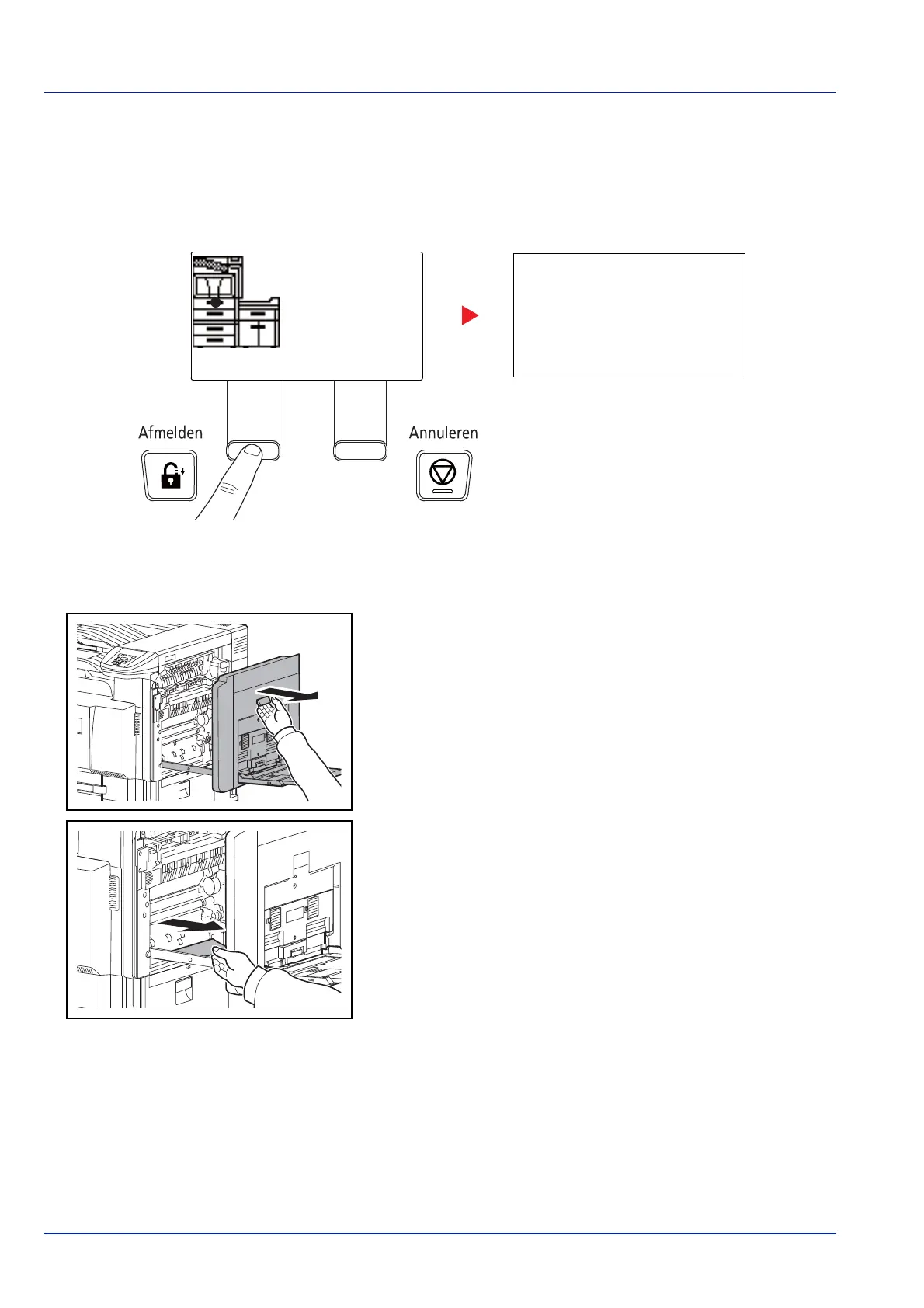 1 Trek de hendel van rechterklep 1 omhoog en open rechterklep 1.
