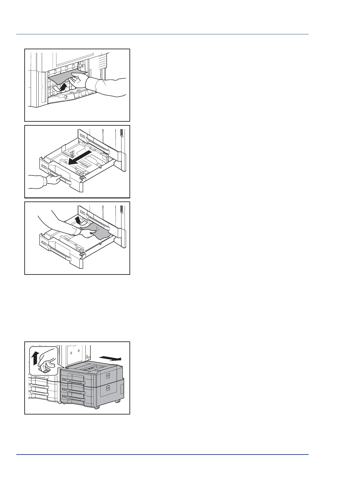 Volg de onderstaande stappen om papierstoringen in cassette 3 of 4 op te lossen bij gebruik van de optionele papierinvoer.