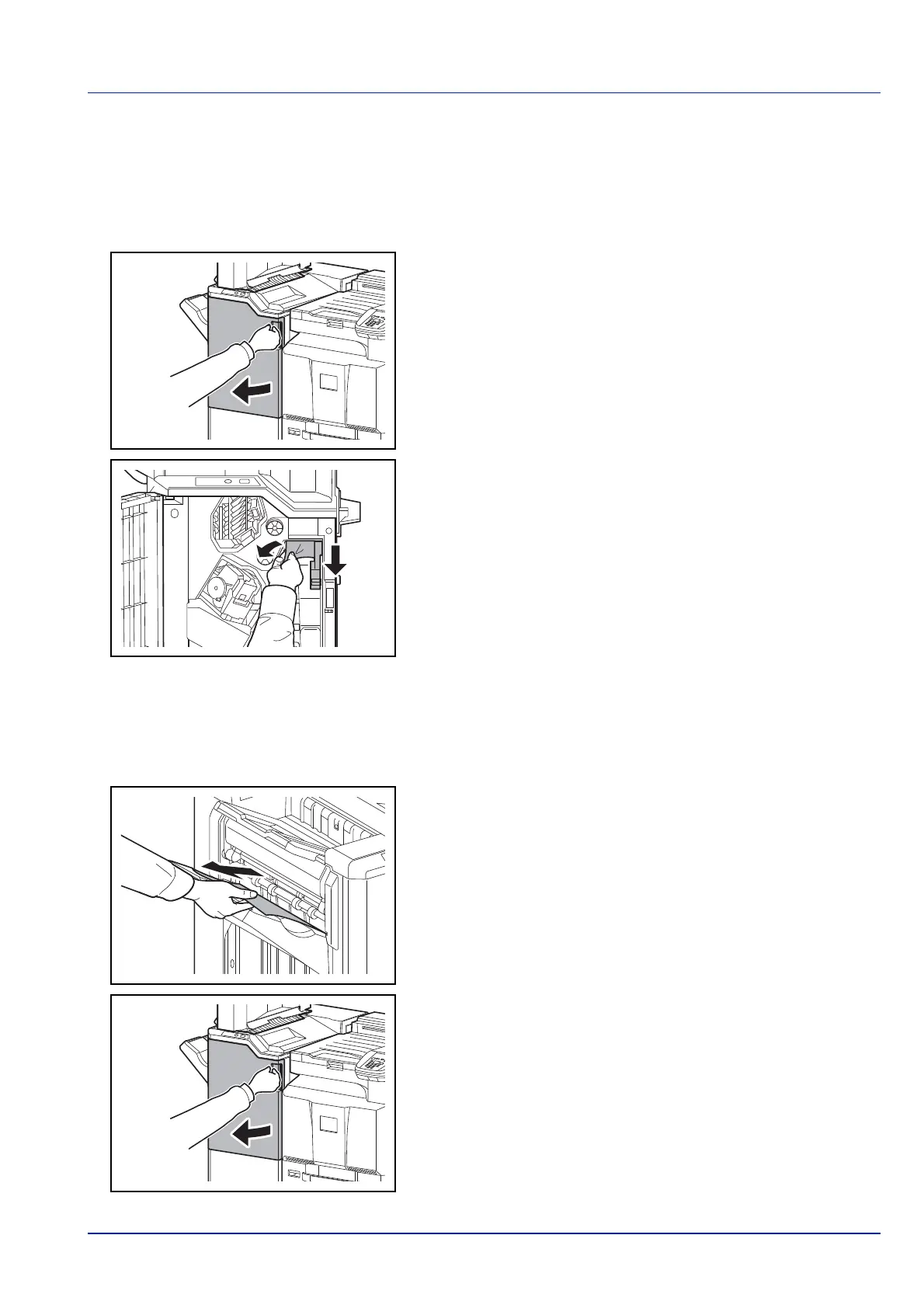 Als zich een papierstoring voordoet in de optionele finisher voor 4000 vel, volg dan de onderstaande stappen om de storing