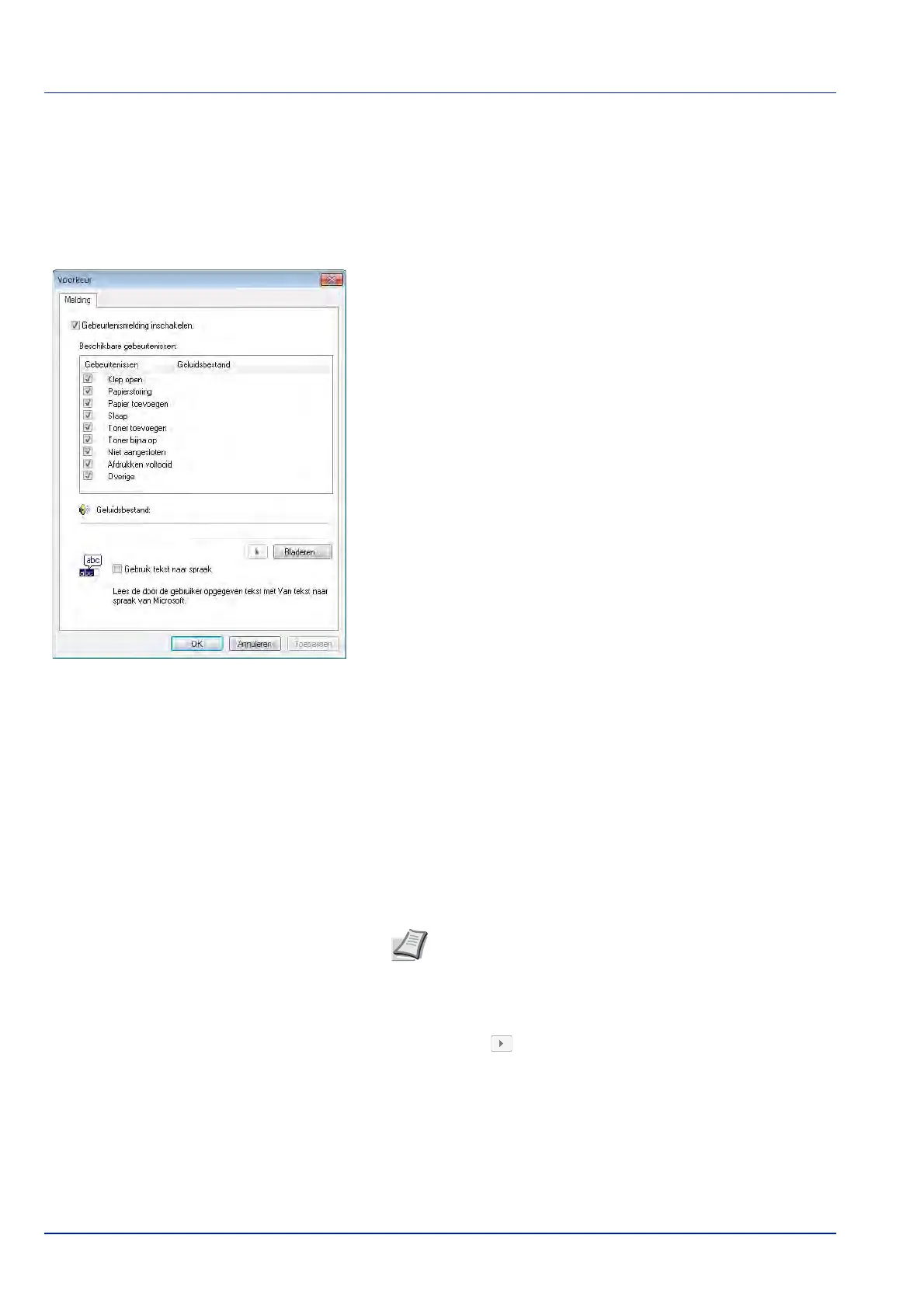 Er kan een geluidsbestand geselecteerd worden als u een melding met