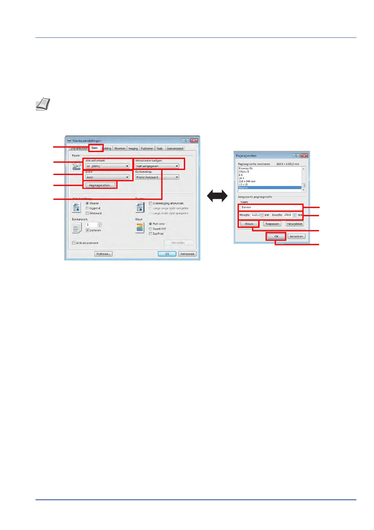 Om een papierformaat te gebruiken dat niet in de lijst met papierformaten van het apparaat staat, moet het papierformaat