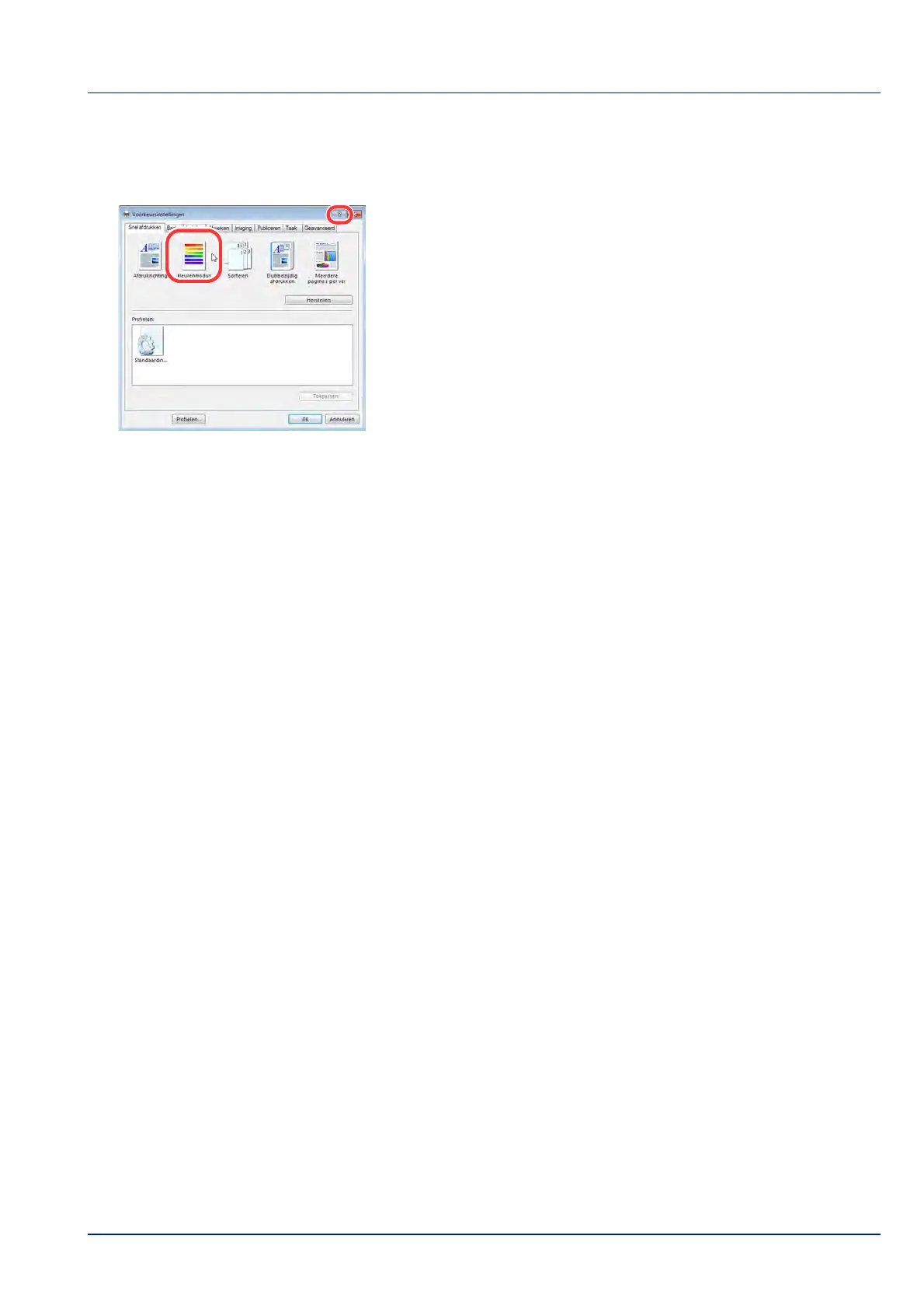 De standaardinstelling voor printerstuurprogramma's kan gewijzigd worden. Door veel gebruikte instellingen te selecteren, kunt u
