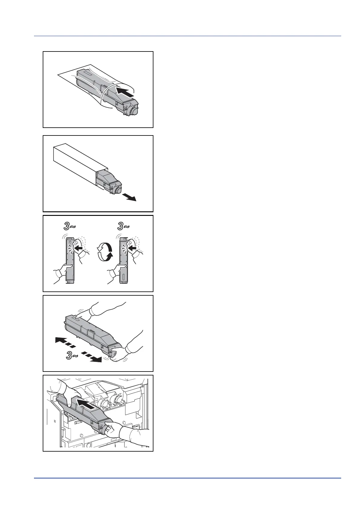7 Houd de tonercontainer met beide handen vast en duw deze