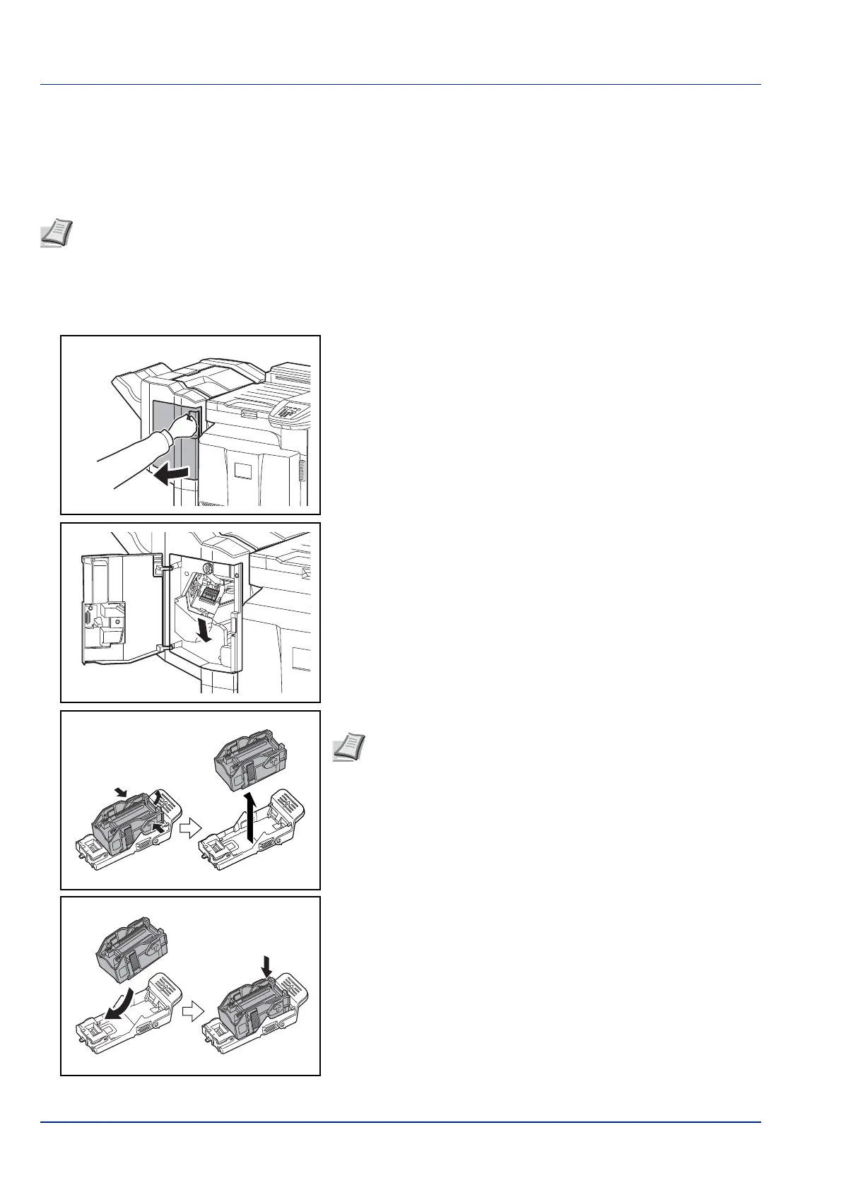 Opmerking Als de nietjes in de nieteenheid op zijn, neem dan contact op met uw servicevertegenwoordiger of