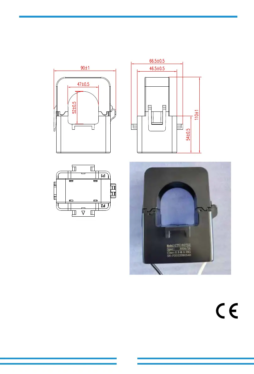 1. Split Core Current Transformer (CT) dimension: (mm)