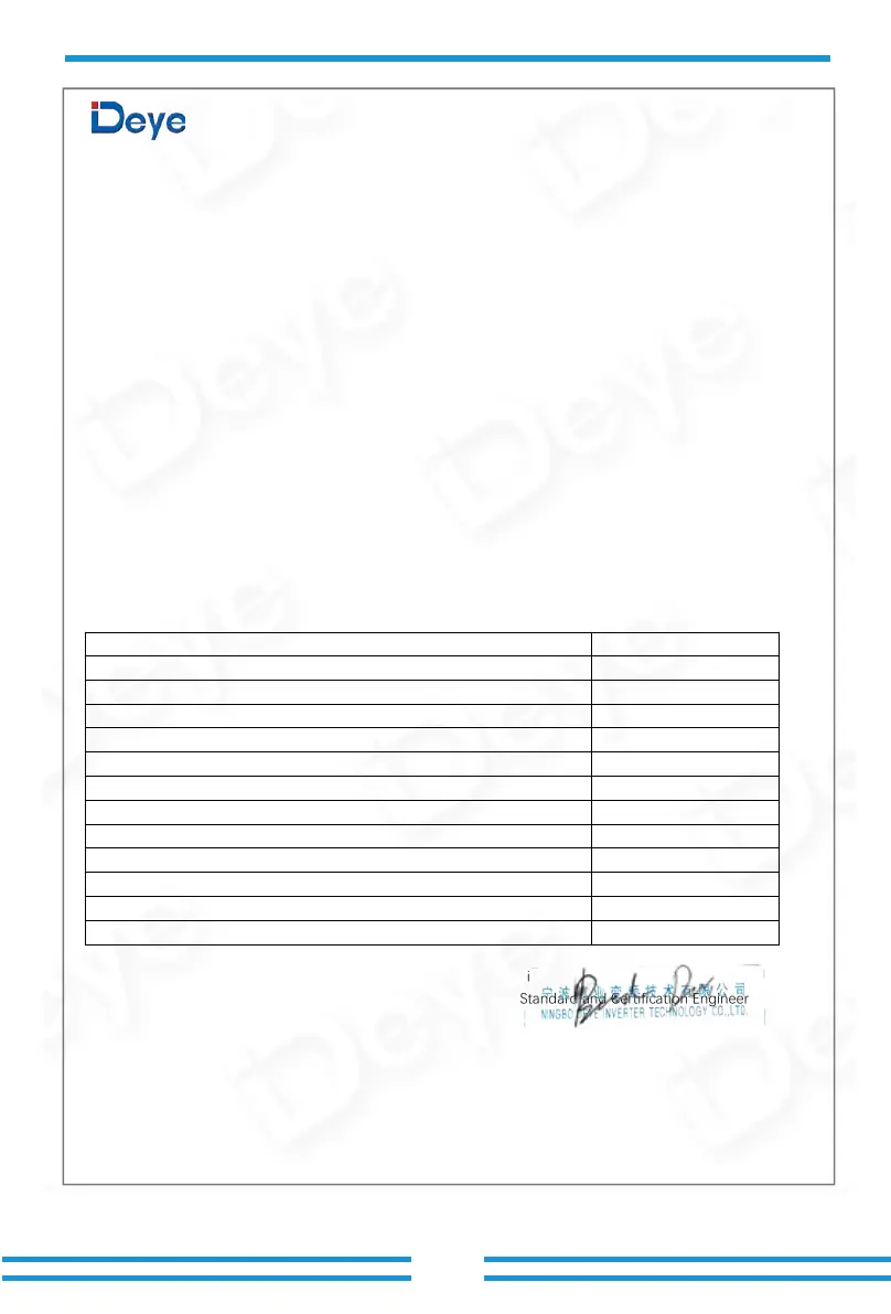 Name and address of the manufacturer: Ningbo Deye Inverter Technolo gy Co., Ltd.