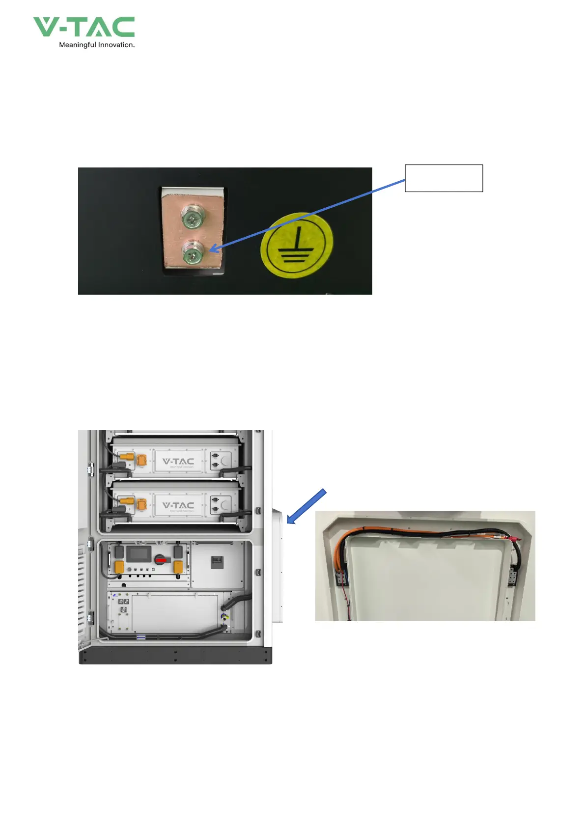 There are 1 external grounding terminals at the front and back of energy storage system, as shown