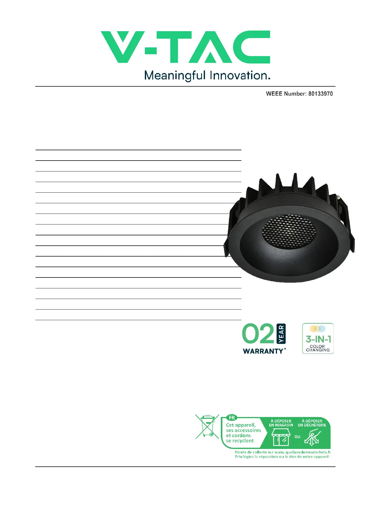 Благодарим ви, че избрахте и закупихте продукт на V-TAC. V-TAC ще ви служи по най-добрия начин. Моля, прочетете внимателно