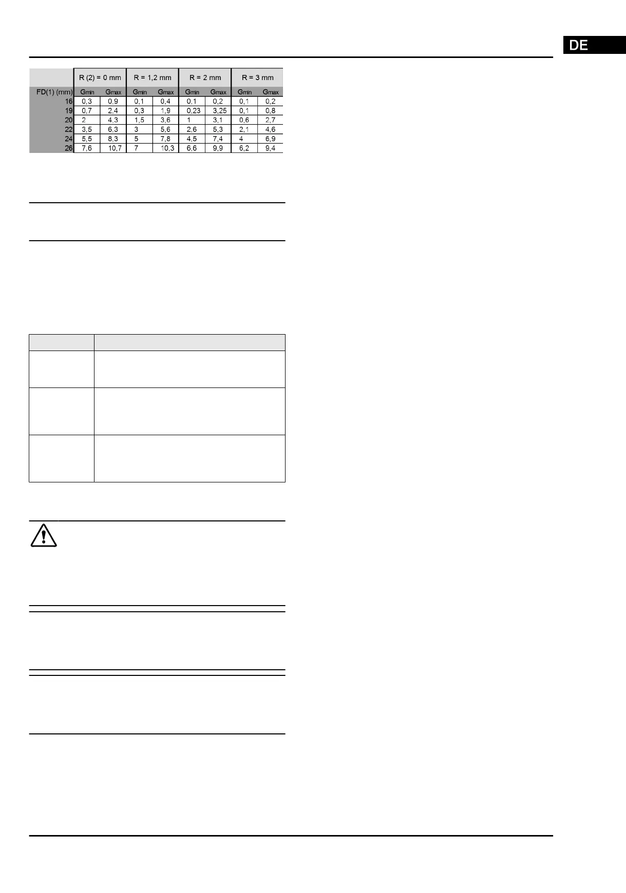 Fig. 68 Tabelle Grenzbereich Spaltmaß