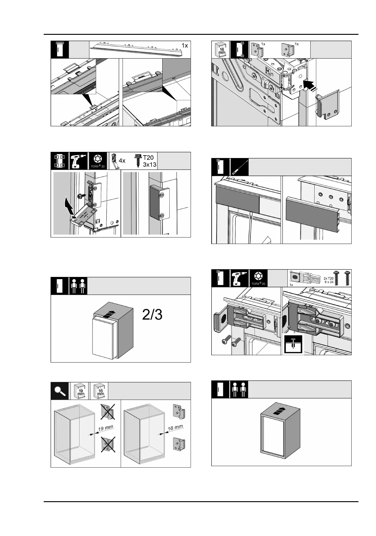 all hinges. No spacer is required if unit walls are 19 mm
