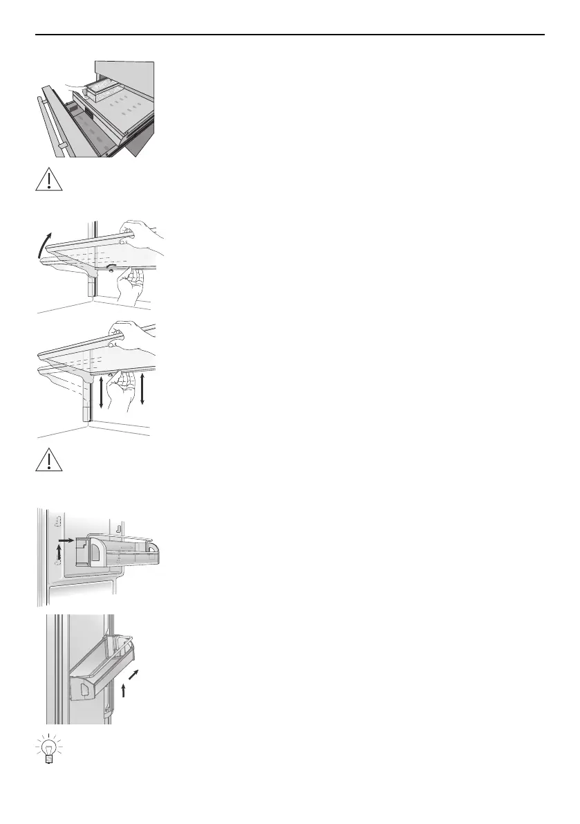 ▸ Adjust the shelf by moving it vertically up or down and en-