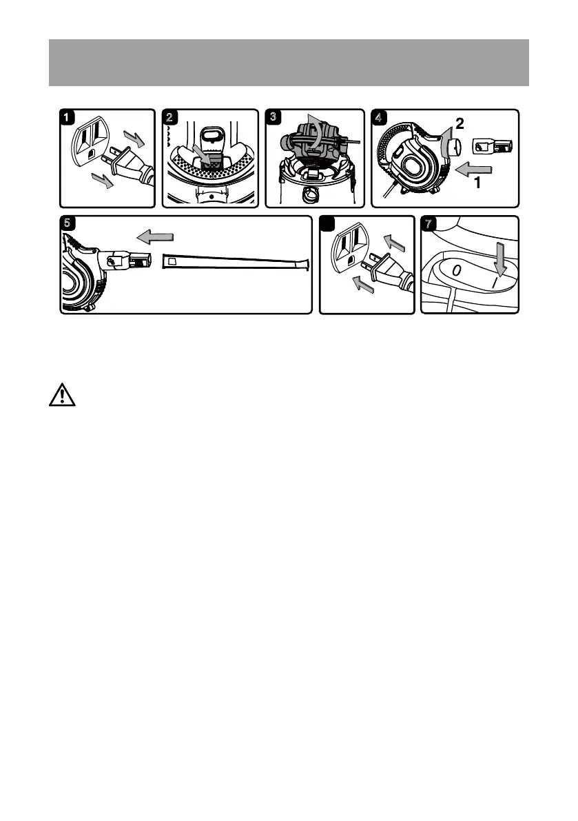 5. Firmly hold the blower before turning it on. Turn the motor on by ipping the switch to the ‘I’ ON