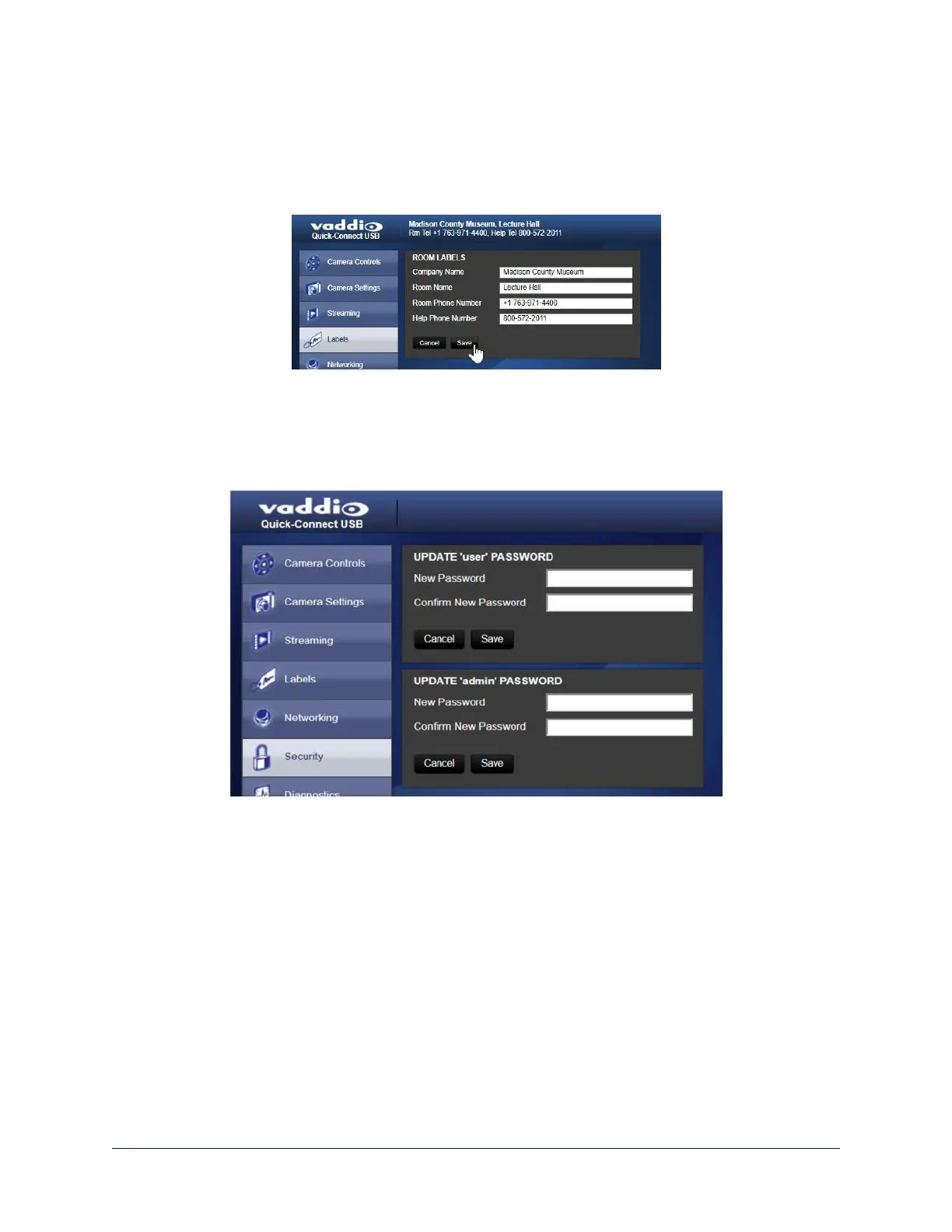 You can change the Quick-Connect device's admin and user passwords at any time on the Security