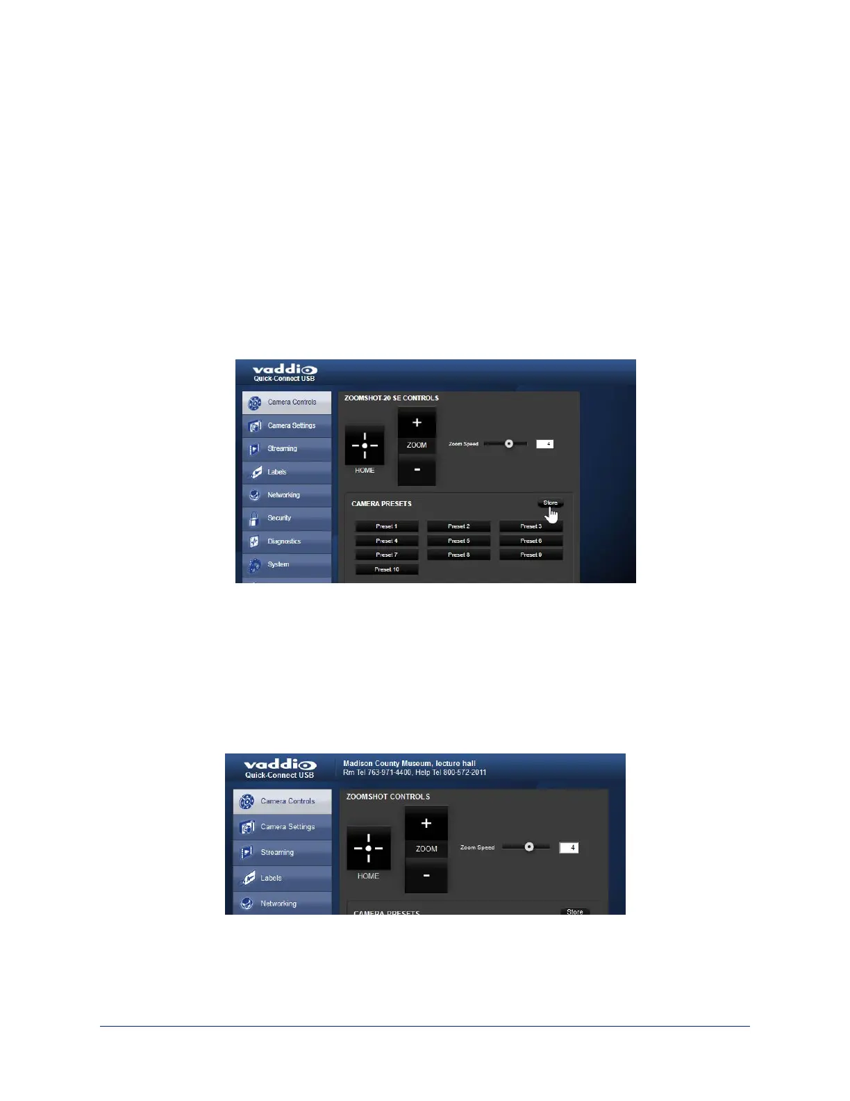If a camera shot will be used repeatedly, you can save the zoom level as a preset. The Home position,