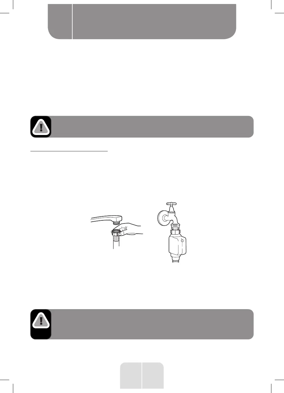 • This precaution is needed to avoid the risk of the water inlet to be blocked and damage