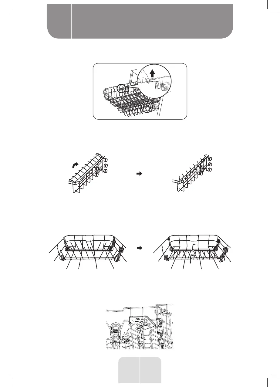 To make room for taller items in the upper basket, raise the cup rack upwards. You can then