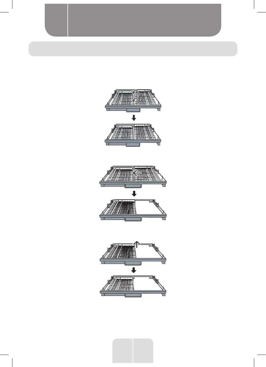 To create more space for the glass basket, the cutlery rack can be removed. Steps :