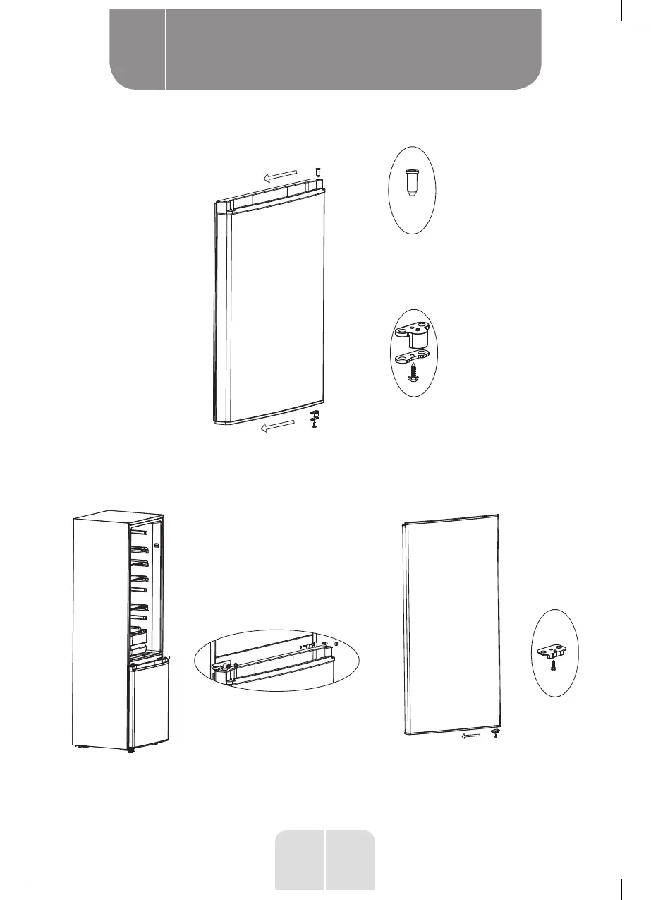 Démontez la butée de la porte du congélateur et installez-la de l’autre côté à l’aide d’une