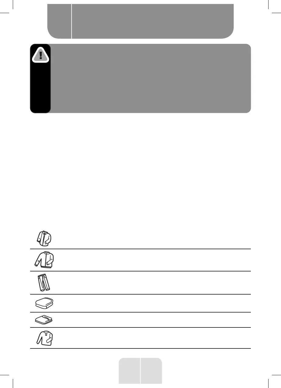 8. Ne séchez jamais de vêtements ayant subi un nettoyage à sec.