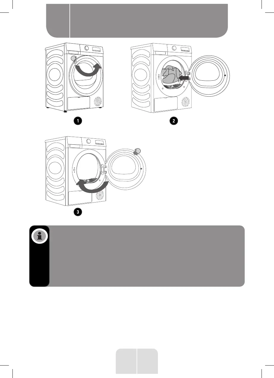 When drying larger items (bedding, towels etc.), loosen them and then insert