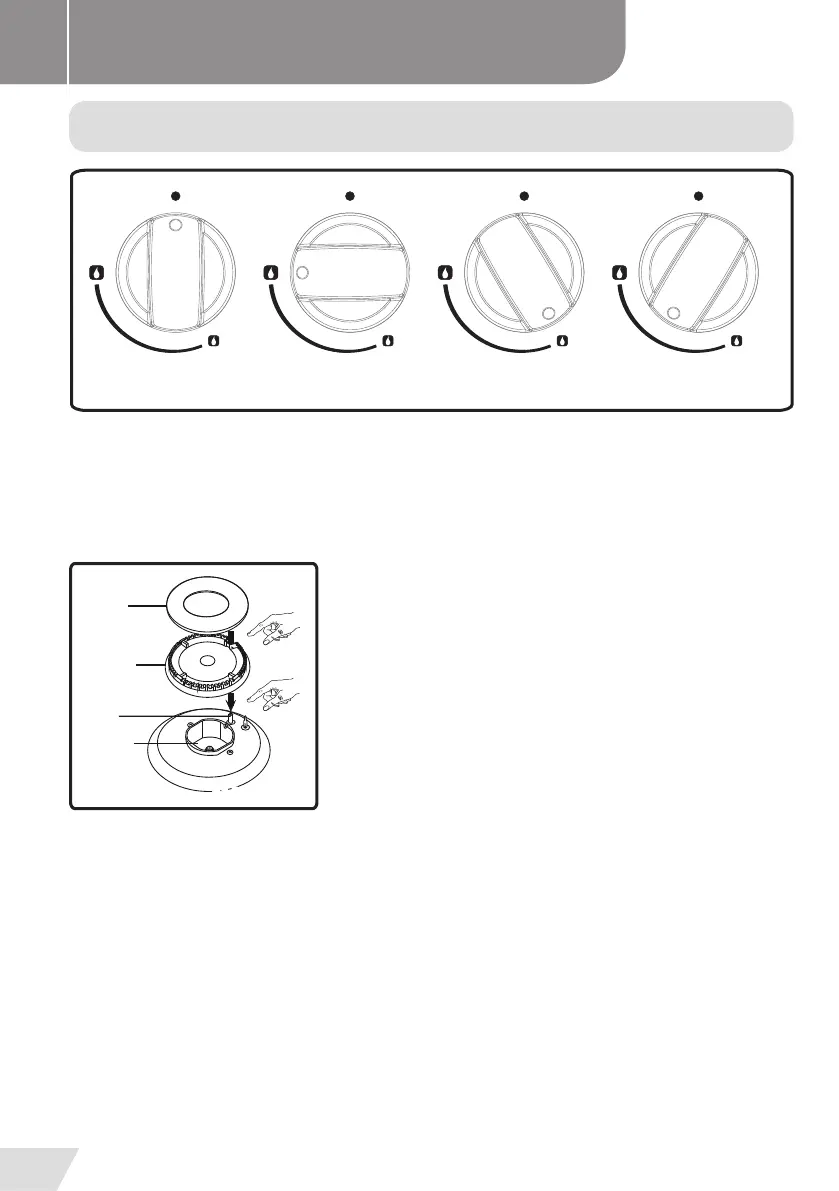 «Min.»einstellen. Benutzen Sie die Brenner nicht, wenn der Schalter auf eine Position