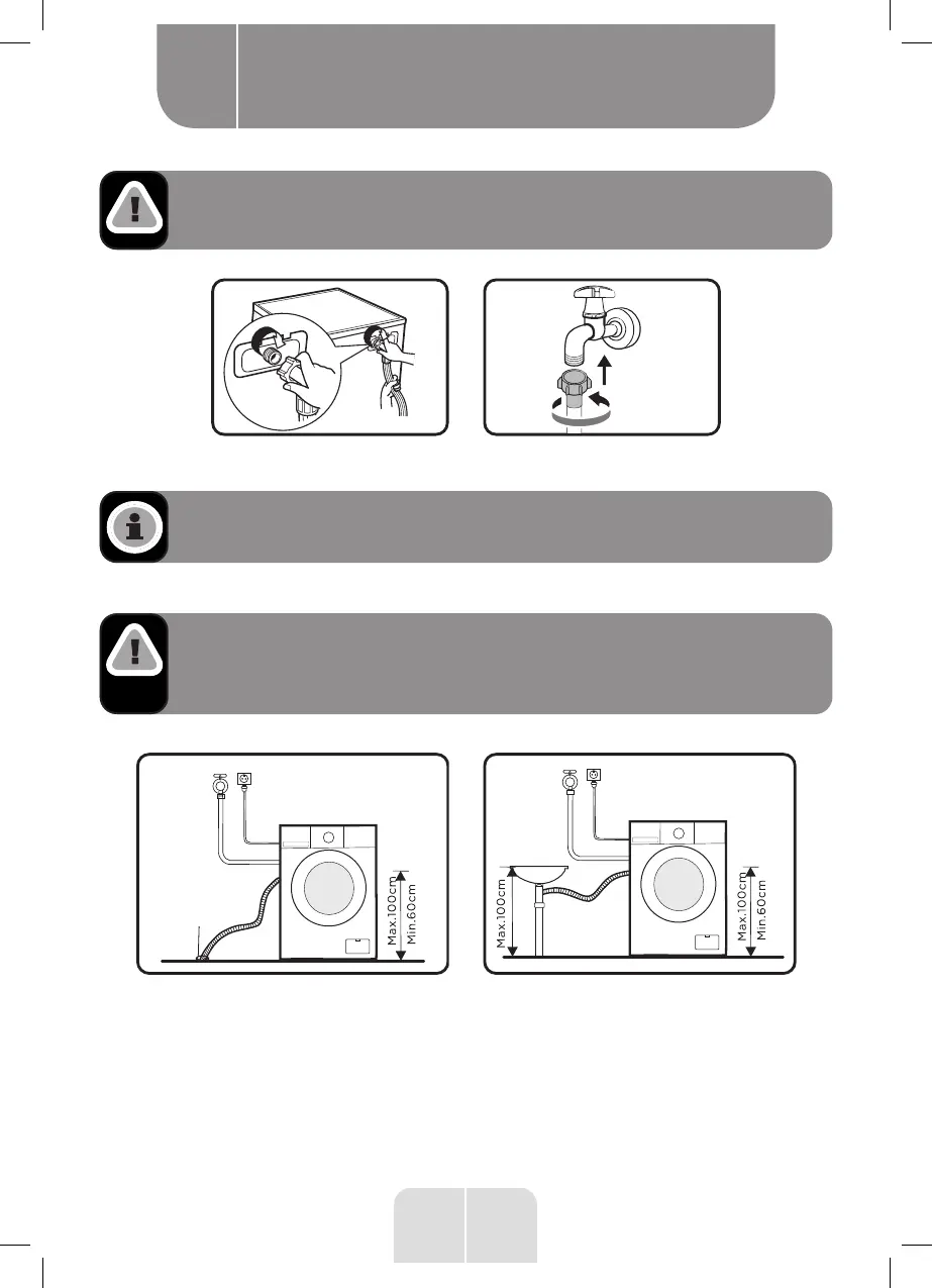 Connect the water supply hose to the water inlet valve and a water tap with cold water as
