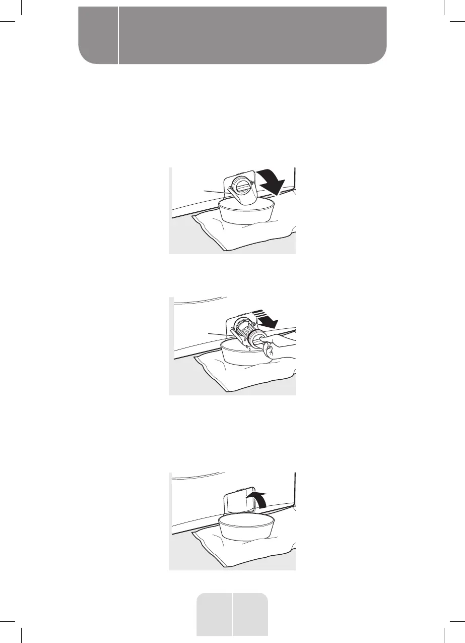 Draai de pompfilter tegen de klok in en verwijder de filter. Open