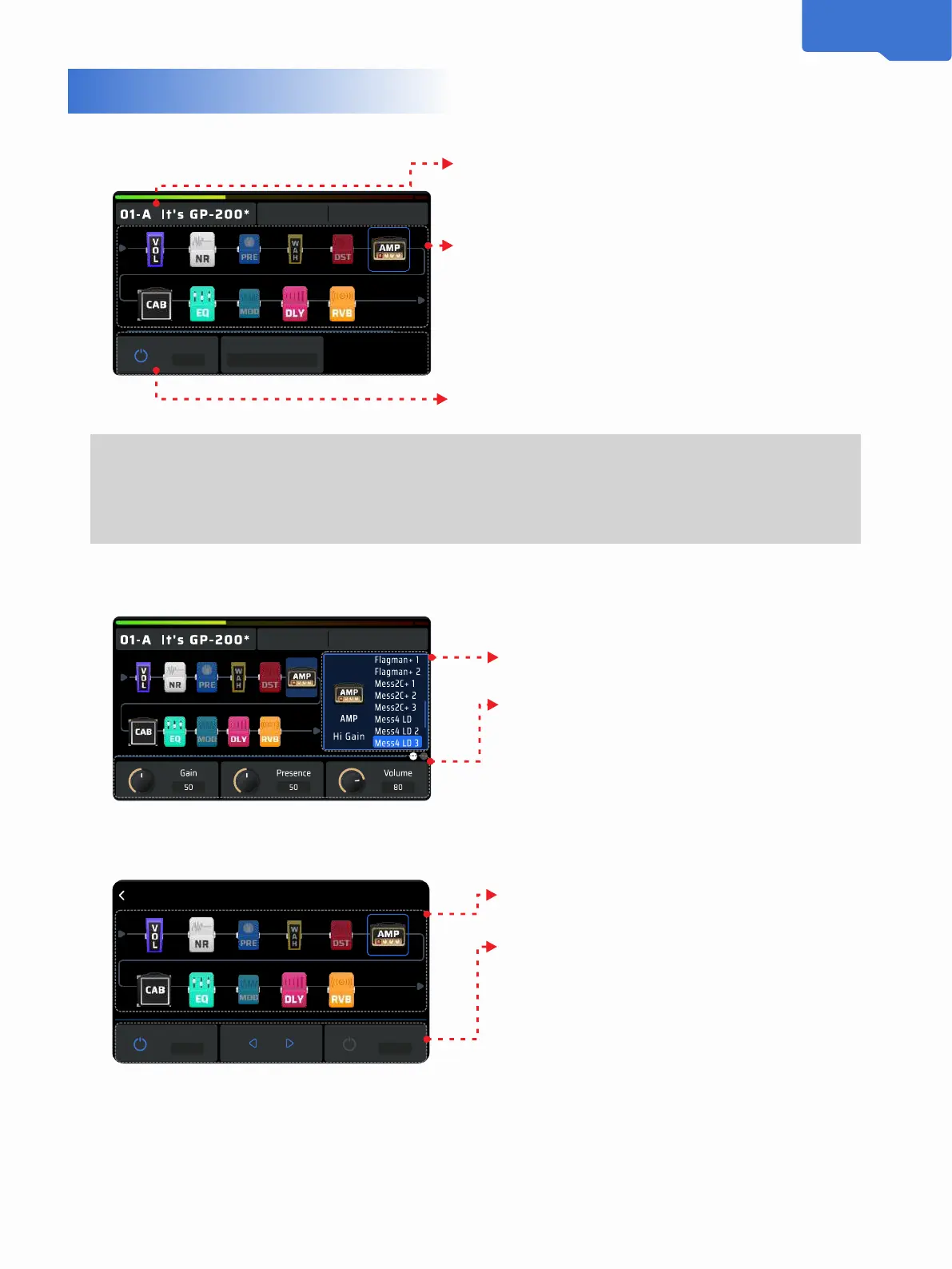 AMP - NR - CAB - EQ - MOD - DLY - RVB - VOL. You can freely