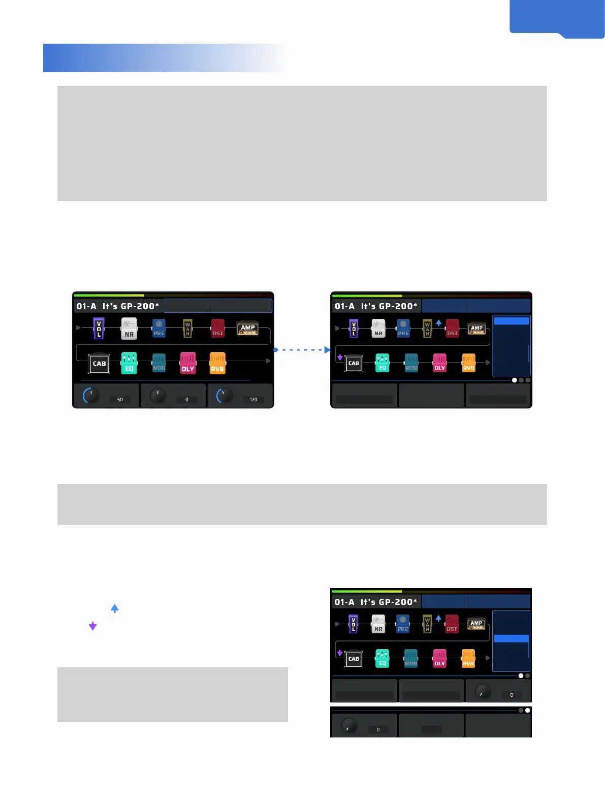 switch patches or turn GP-200 o before saving your changes, the changes will be lost. Make sure to press the