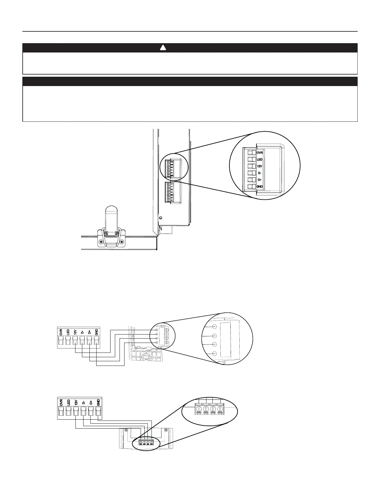 sont insérés correctement dans leur réceptacle de bornier correspondant. Utiliser les vis pour xer les ls au bornier.