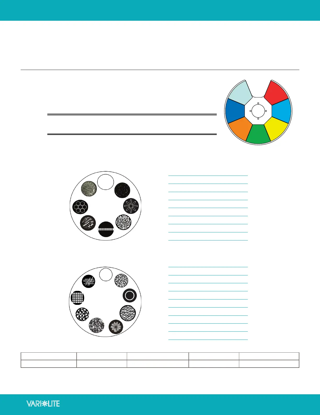 This rotating gobo wheel oers seven rotatable, indexable gobo positions and one open position.