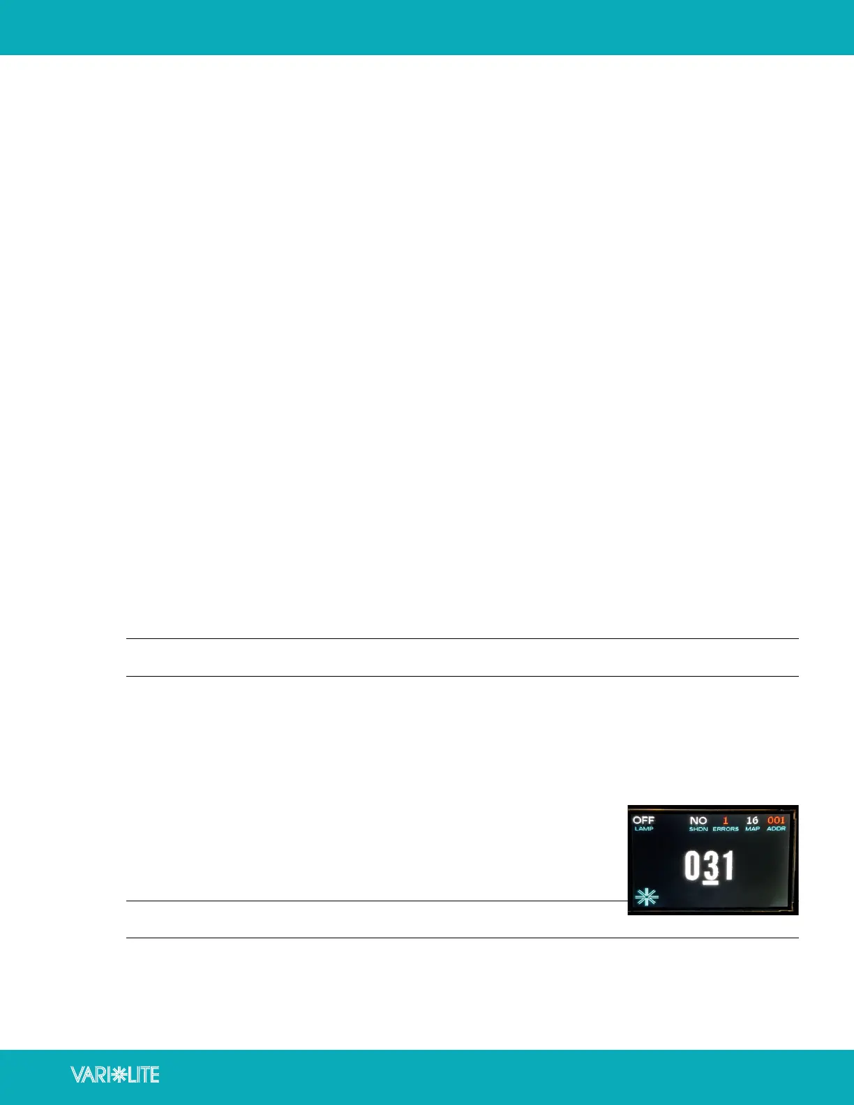 • ADDR – Displays the current DMX address for the fixture.