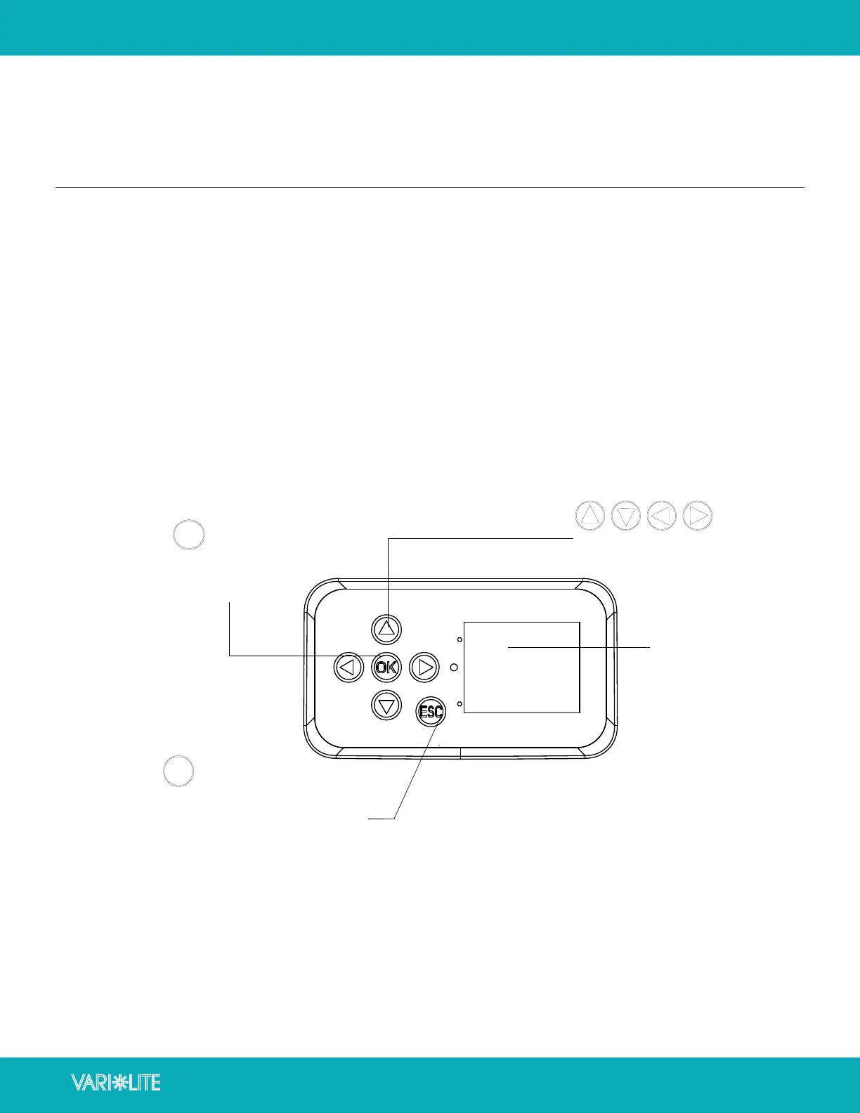 The menu system is controlled by an OK (Enter), ESC (Escape), and four Arrow (◄▲▼►) buttons.