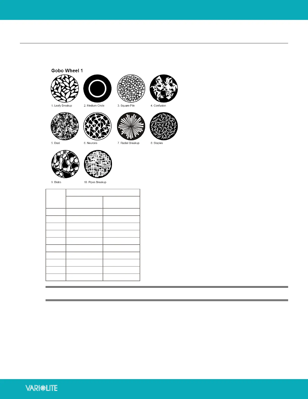 gobos plus one open position and Gobo Wheel 2 oering 7 rotatable, indexable gobos plus one open position.