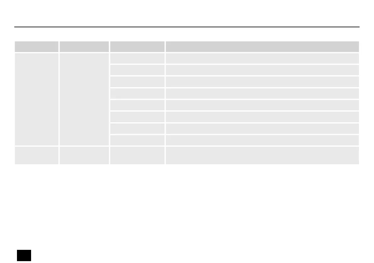 8 Ambient LED 0…255 Running speed of automatic show RGB, increasing (when channel 7 =
