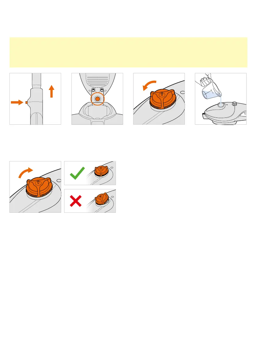 IMPORTANT: Never turn the machine over when water is in the tank, as some water may leak through the air valve.