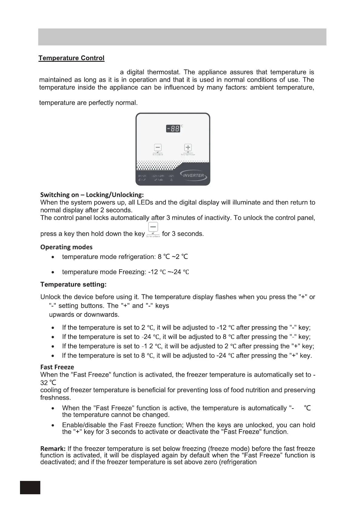 for 26 hours, after this time the Fast Freeze function is automatically deactivated. Rapid