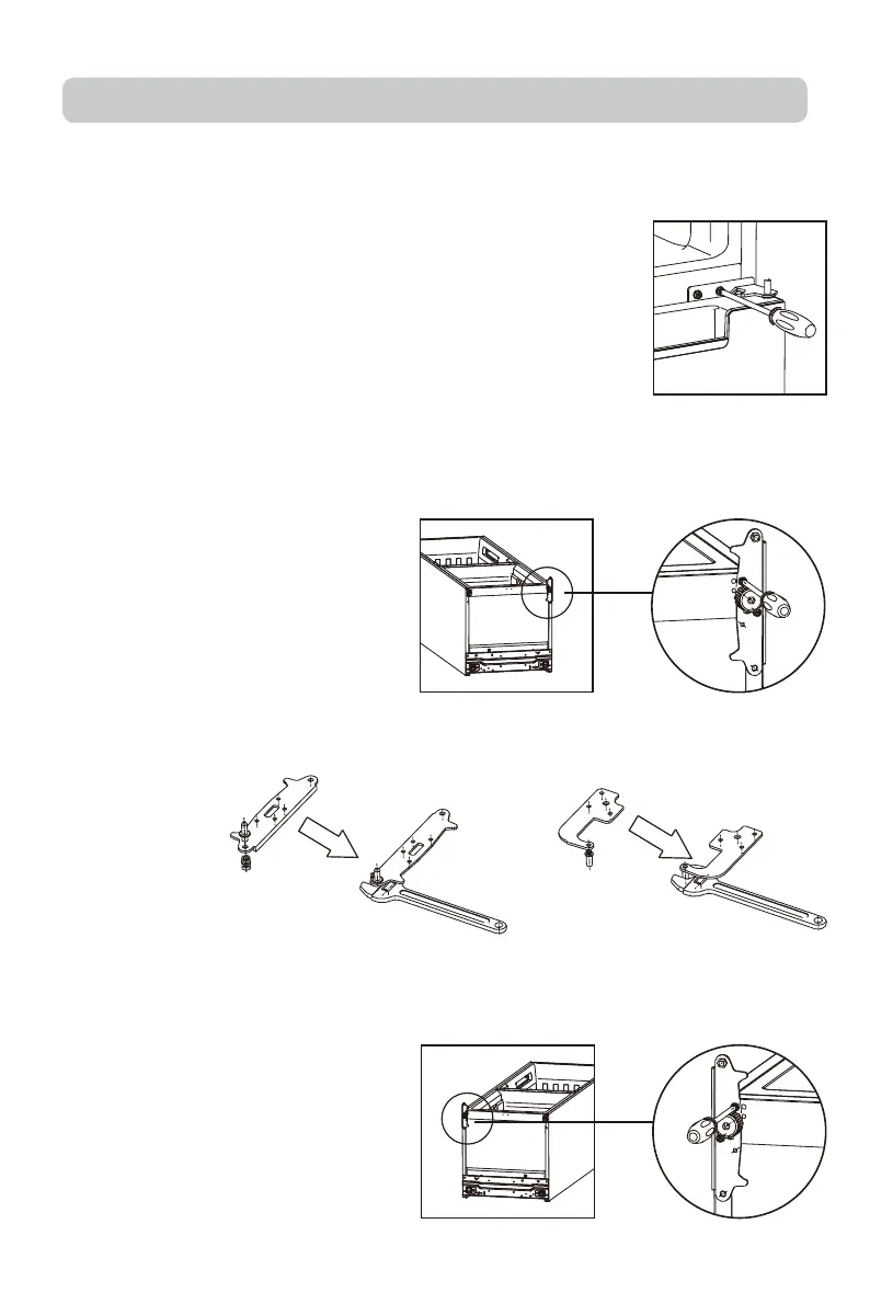 6 Installez la charnière inférieure sous le réfrigérateur comme ci-dessous,