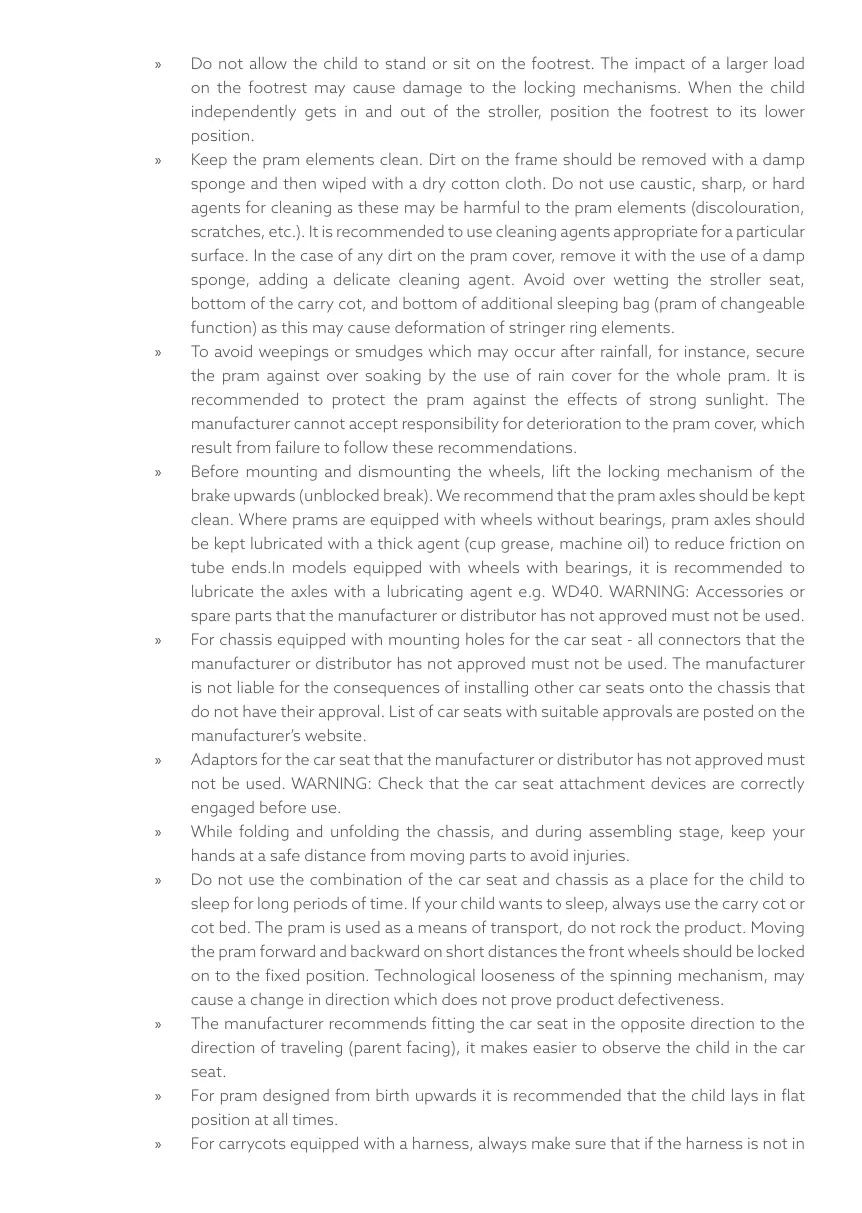 agents for cleaning as these may be harmful to the pram elements (discolouration,