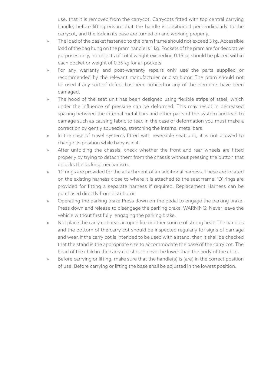 » Not place the carry cot near an open fire or other source of strong heat. The handles