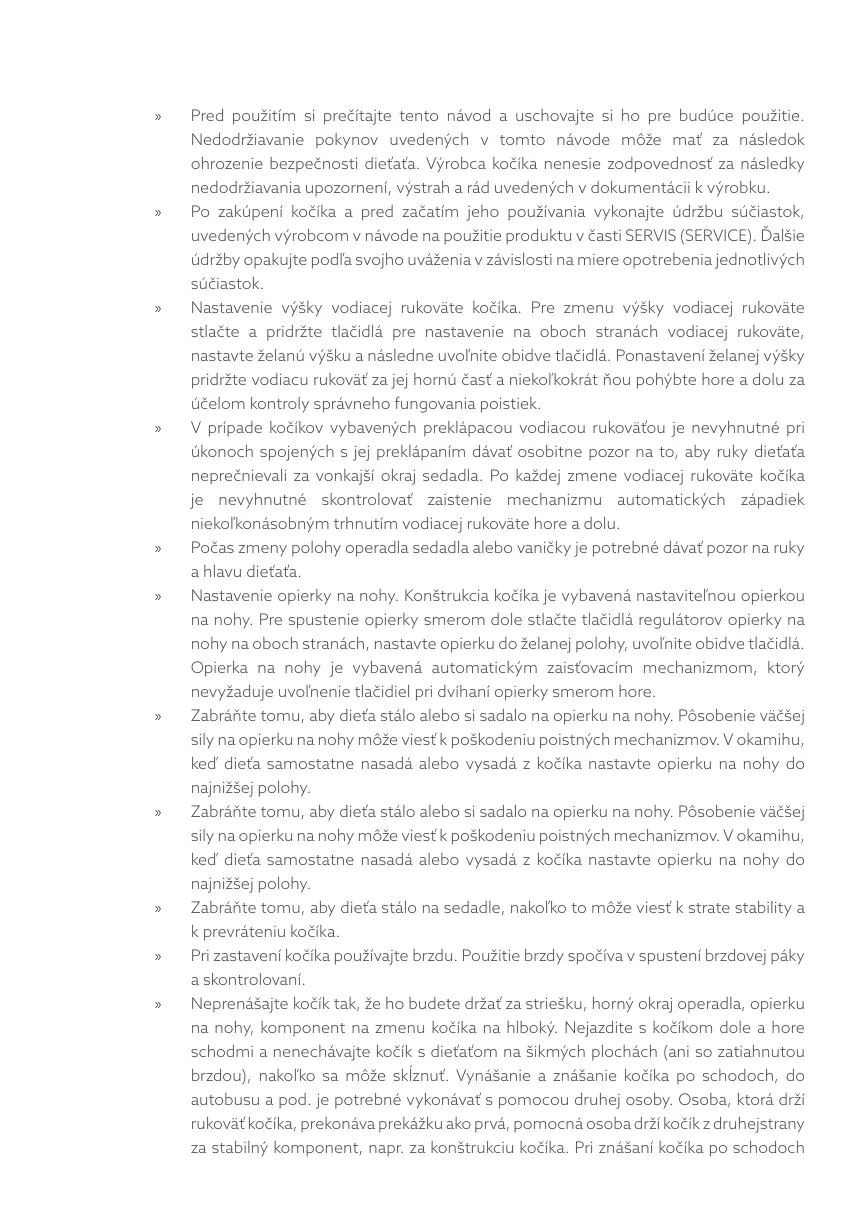 » Po zakúpení kočíka a pred začatím jeho používania vykonajte údržbu súčiastok,